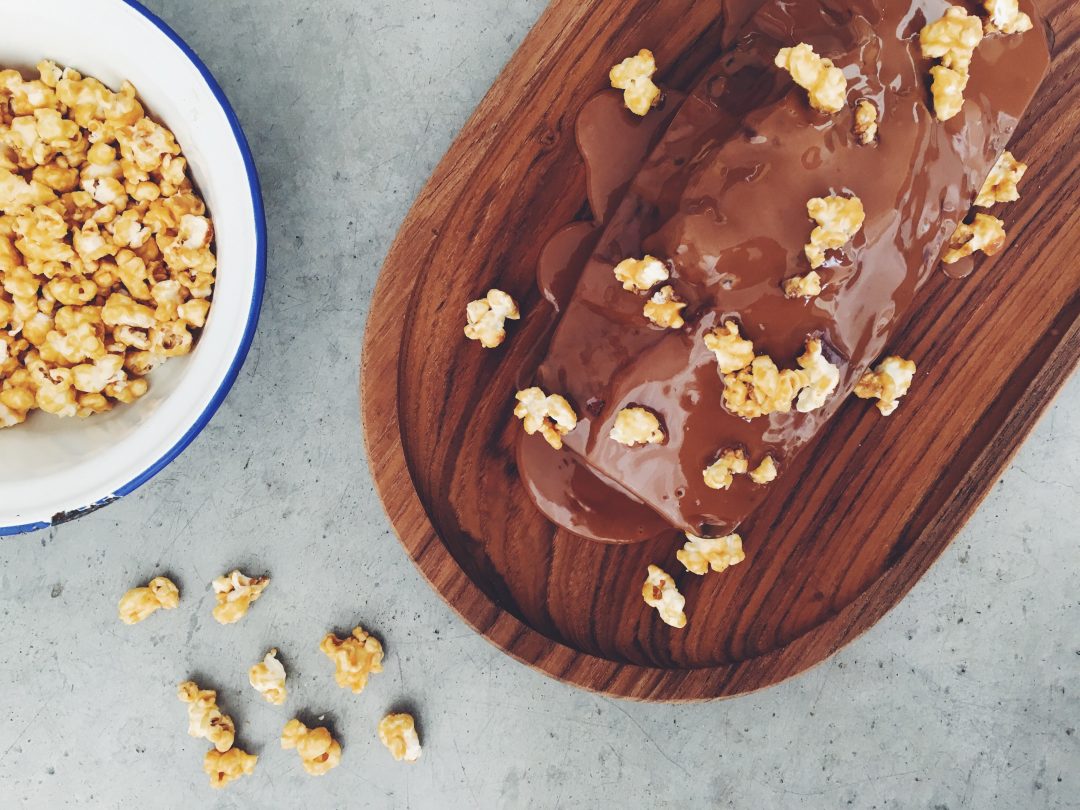 Pour les trois ans de ma fille, comme toute bonne mère qui se respecte (ou qui veut en donner l’image), j’ai passé une demi-journée à réaliser un énorme gâteau de quatre étages rempli de beurre et de sucre. Tellement riche, tellement gros, que finalement elle n’en a pas mangé (et moi non plus d’ailleurs, vues les proportions). Finalement quand la semaine suivante il a fallu remettre ça, mais cette fois avec 6 enfants de 3 ans, j’ai changé mon fusil d’épaule et je leur ai concocté un joli marbré hyper basique, mais glacé aux Carambar et recouvert de pop-corns Hop o Pop. Carton plein auprès des kids ! Alors déculpabilisez les wonder-mums 🙂